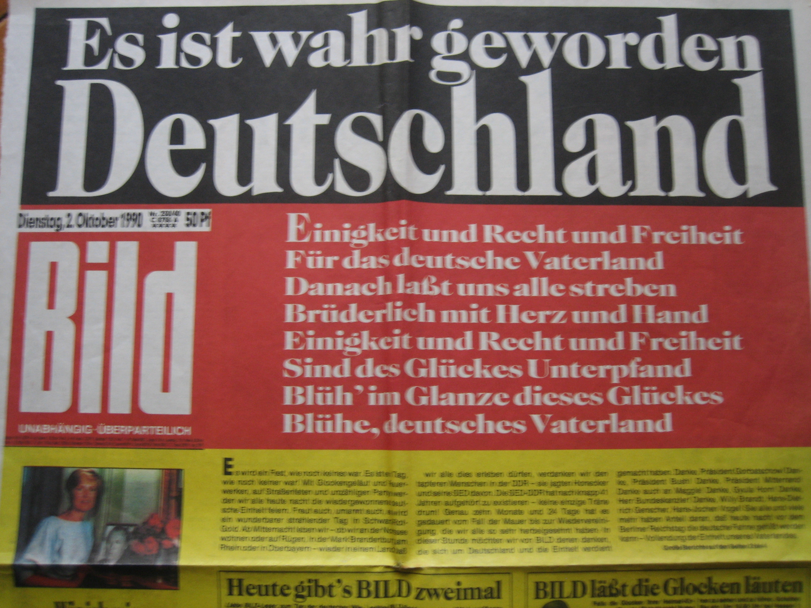 Manifesto in occasione della riunificazione delle due Germanie, Germania, 1990, prestato da Marina Panella